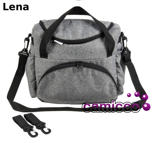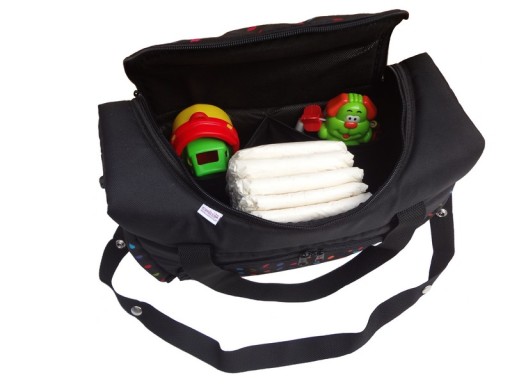 Torbę można trzymać za uchwyty lub dzięki dopinanemu paskowi nosić na ramieniu (pasek posiada regulację) oraz zawiesić na rączkach wózka dzięki specjalnym haczykom zapinanym na rzep które w każdej chwili można zdemontować