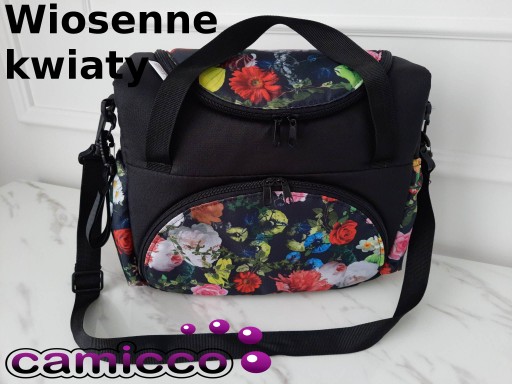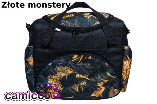 Boczne kieszonki zapewniają bezpieczny transport butelek, zapobiegające przed możliwym rozlaniem się. Z przodu torby znajduje się duża kieszeń zapinana na zamek