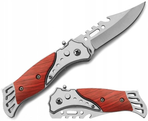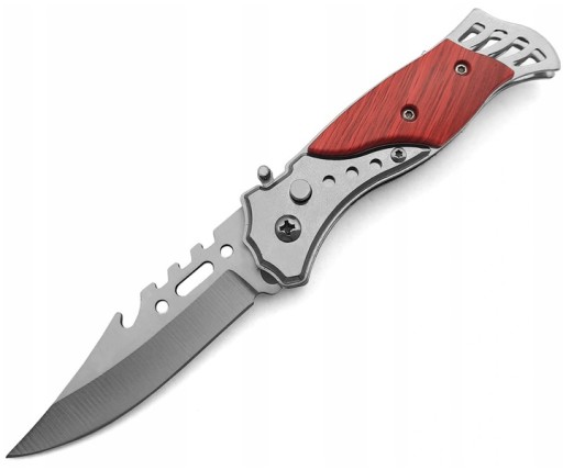 Doskonała propozycja dla wędkarzy, harcerzy, myśliwych, podróżników itd. Metalowa, wyprofilowana rączka zapewnia bezpieczny i pewny chwyt. W górnej części głowni znajduje się mała piła do szarpania lub cięcia drewna.