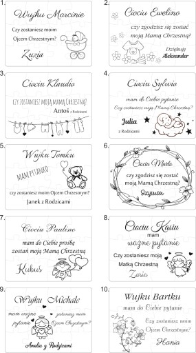 Oferujemy Państwu bardzo fajny i ciekawy gadżet - drewniane puzzle z zapytaniem dla chrzestnej lub chrzestnego. Jest to bardzo oryginalny sposób aby zapytać się, poprosić kogoś czy chce zostać matką chrzestną czy ojcem chrzestnym naszego dziecka.