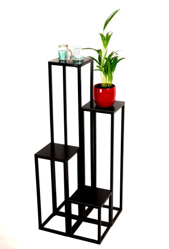 Wielofunkcyjny stojak na kwiaty i dekoracje wykonany ze stali lakierowanej natryskowo lub proszkowo.