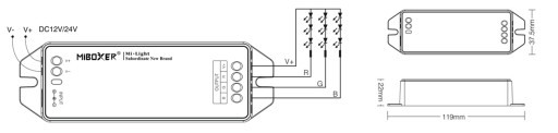 Odbiornik radiowy LED RGB 12V / 24V DC 12A firmy Mi-Light to kompaktowych rozmiarów urządzenie, które służy do sterowania oświetleniem LED wielokolorowym.