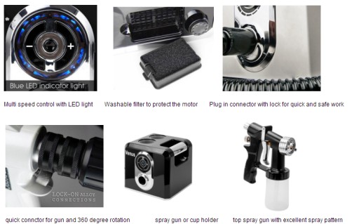 Zaletą naszych urządzeń jest to, że pracują w systemie HVLP – czyli opalają w „chmurze ciepłego powietrza” dzięki czemu skóra jest prawie sucha po aplikacji.