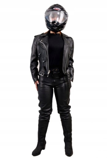 Spodnie skórzane motocyklowe damskie model SSD003 marki L&J Rypard. Wykonane zostały z miękkiej, plastycznej naturalnej skóry bydlęcej o garbowaniu Anilin, która świetnie dopasowuje się do kobiecej sylwetki. Ich styl jak i krój oraz prostota wykonania świetnie wpisują się w kategorie motocykli typu Chopper, Cruiser. Jeden z najbardziej wyjątkowych wyrobów w kategorii spodni skórzanych motocyklowych naszego asortymentu, który zapewni Ci wielu wyjątkowych doznań oraz pełnego zadowolenia i radości z jazdy.