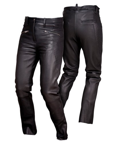 Spodnie motocyklowe skórzane damskie Caro marki L&J RYPARD. Model ten został wykonany z cieńszej skóry naturalnej o grubości 1,0-1,2mm co sprawia, że ich użytkowanie jest niezwykle komfortowe. Spodnie motocyklowe damskie Caro są również zdecydowanie lżejsze od innych produktów z tej kategorii. Zastosowane przeszycia na biodrach, a także sam krój podchodzący pod spodnie typu "jeans" nadają temu modelowi specyficznego, nowoczesnego designu, który mimo wszystko świetnie komponuje się z klasycznymi, prostymi kurtkami. Spodnie Caro zostały stworzone z myślą o klasycznych motocyklach, ale równie dobrze sprawdzą się w turystyce szosowej.