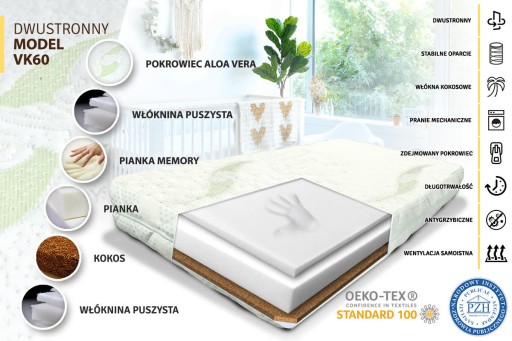 KOKOS-PIANKA-VISCO (pianka memory) z pokrowcem Aloe Vera