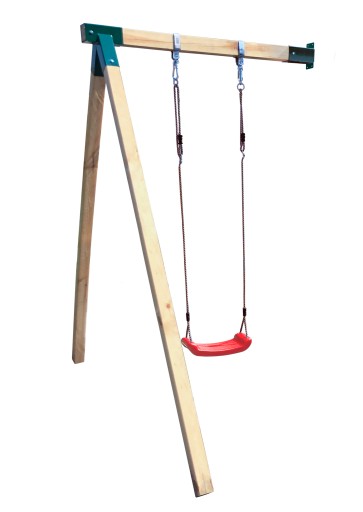 W skład zestawu huśtawki wchodzi: drewno, łącznik potrójny 1 sztuka, mocowanie do wieży lub domku, 1 sztuka, 2 objemy do huśtawki, 1 huśtawka