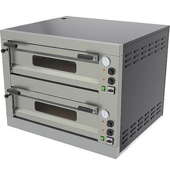 Profesjonalny piec do pizzy 2-poziomowy E-8. Piec przeznaczony do pieczenia pizzy o średnicy 35 cm. Jednorazowy wsad – 8 blach z pizzą (po 4 do każdej komory). Front pieca wykonany ze stali nierdzewnej - boki malowane proszkowo. Każda komora pieca posiada niezależnie sterowane grzałki górne i dolne z regulacją temperatury do 450ºC. Komora pieca jest nagrzewana dzięki wentylowanym płytom szamotowym. Piec posiada oświetlenie komory oraz wbudowany termometr.
