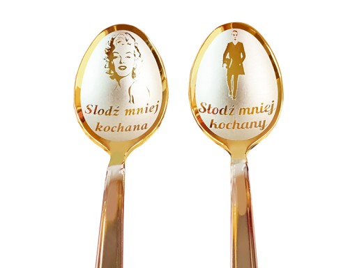 Kolor łyżeczek do wyboru: 1. Dwie łyżeczki w kolorze srebrnym. 2. Dwie łyżeczki w kolorze złotym. Opisz swój wybór w komentarzu do zamówienia (na etapie koszyka), inaczej wybierzemy sztućce LOSOWO.