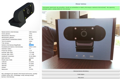 Poniżej realne parametry kamery sprawdzone specjalnym testem online !
