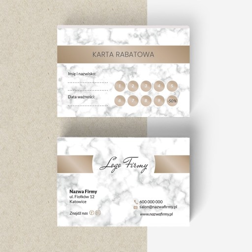 Nie, na gotowych kartach rabatowych nie ma naszego logo. Znajdują się tylko Państwa dane, które zostały wysłane do projektu.
