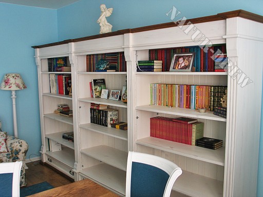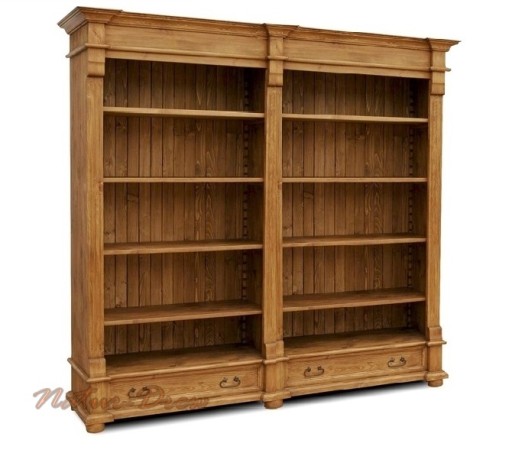 - Drewniany Regał na książki,postarzany z piękną zdobioną koroną u góry,regał posiada cztery regulowane półki,które ułatwiają dopasowanie ,pod przedmiot znajdujący sie w meblu,dodatkowo u dołu posiada drewnianą funkcjonalną szufladę wysuwana na drewnianych prowadnicach,dodatkowym atutem regału są ręcznie kute zawiasy i uchwyty które nadają charakteru i duszy meblom z tej serii.