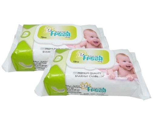 - "Fresh Baby" - opakowanie zawiera 72 szt. chusteczek nawilżanych.