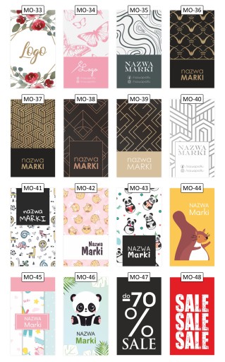 - Nie znalazłeś odpowiedniego szablonu dla siebie? Zapraszamy na naszą aukcję na której możesz zakupić przygotowanie indywidualnego projektu metki zgodnie z Twoimi potrzebami, dopasowany do Twojej marki!