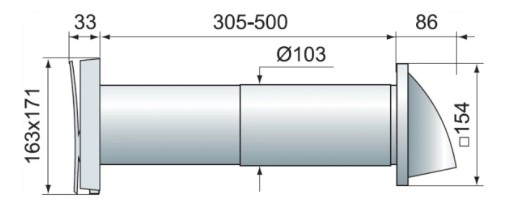 Nawiewnik składa się z 2 kratek wentylacyjnych (wewnętrznej i zewnętrznej) oraz okrągłego kanału teleskopowego