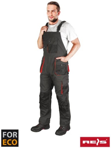 - liczne kieszenie m.in. dwie na klatce piersiowej zapinane na rzep, dwie po bokach, z tyłu dwie zapinane na rzep, na nogawce na narzędzia oraz kieszeń boczna zapinana na rzep,