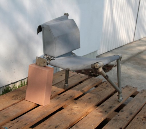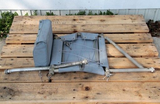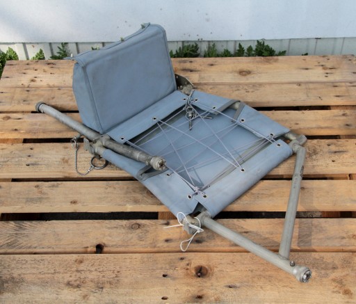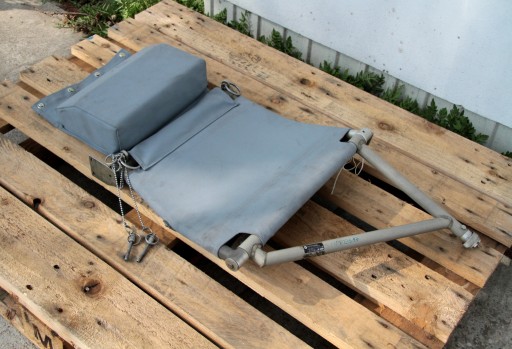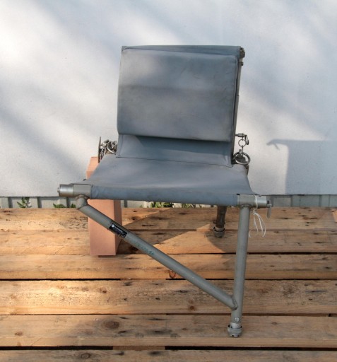 Oferuję Państwu mały fotel składany przeznaczony do montowania w przedziałach desantowych śmigłowców wojskowych NATO.