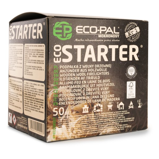 Ekologiczna rozpałka do grilla, kominka, piecyka o symbolu ECOSTARTER