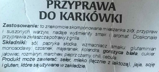Przyprawa do karkówki jest idealna do przygotowania mięsa pieczonego, smażonego, duszonego oraz z grilla. To znakomita mieszanka przypraw, ziół oraz warzyw, dzięki której karkówka nabiera wyjątkowego smaku. W połączeniu z olejem lub oliwą stworzy doskonałą marynatę, która sprawi, że mięso stanie się niezwykle aromatyczne, kruche i jednocześnie soczyste. Można nią marynować cały schab karkowy lub pojedyncze plastry mięsa.