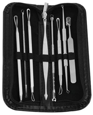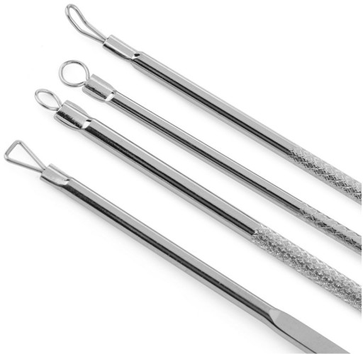 Kompletny i skuteczny zestaw do oczyszczania twarzy z wągrów, pryszczy, zaskórników i nieczystości. Ułatwiają higieniczne usuwanie zanieczyszczeń z trudno dostępnych miejsc, w przeciwieństwie do ręcznego wyciskania nie niszczą skóry i nie rozsiewają bakterii. Końcówki przyborów zostały zaprojektowane w ten sposób, aby z łatwością dostać się do określonych obszarów i oczyścić je z wągrów, zapewniając optymalne efekty. Zestaw wykonany ze stali nierdzewnej łatwej do dezynfekcji.