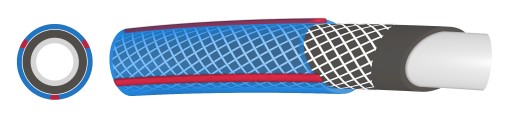 - Wzmocnienie krzyżowe węża wykonane jest z najwyższej jakości przędzy poliestrowej, zabezpiecza wyrób przed zmianą parametrów technicznych węża (średnica wew. wyrobu) oraz zwiększa jego wytrzymałość na ciśnienia. Grubość przędzy oraz gęstość oplotu dobierana jest odpowiednio do rodzajów i średnic węży