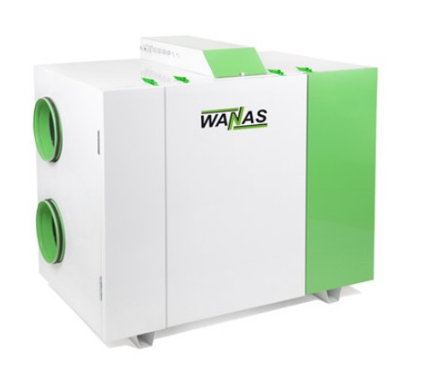 Rekuperator WANAS 1300H jest to kompaktowa centrala wentylacyjna z poziomym układem króćców służąca do wentylacji domów jednorodzinnych lub niewielkich obiektów usługowych.