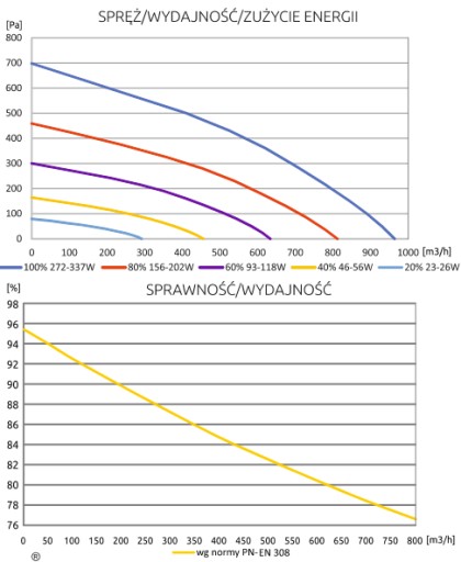 - Wysoka sprawność cieplna – wymiennik z tworzywa sztucznego
