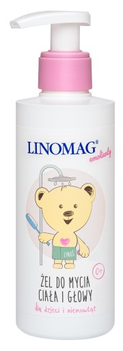 LINOMAG® Żel do mycia ciała i głowy polecany do codziennej kąpieli dzieci i niemowląt od 1. dnia życia. Substancje aktywne stanowią połączenie łagodnych środków myjących, oleju lnianego bogatego w NNKT, w tym kwasy omega-3 i omega-6 oraz pantenolu.