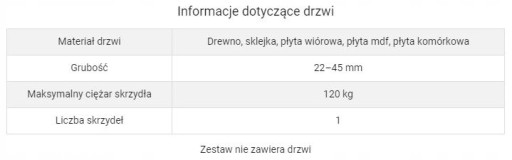 – Maks. obciążenie skrzydła drzwi 120 kg