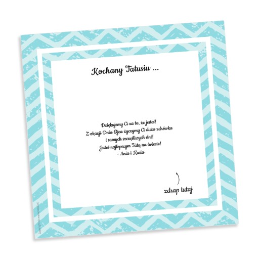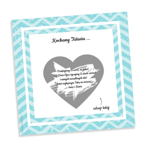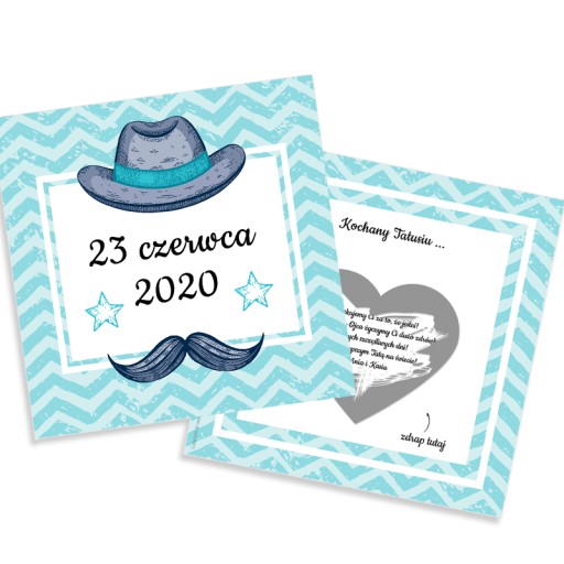 - Tekst ukryty pod zdrapką (np. życzenia, wierszyk itp) + podpis (np. Twoje imię)