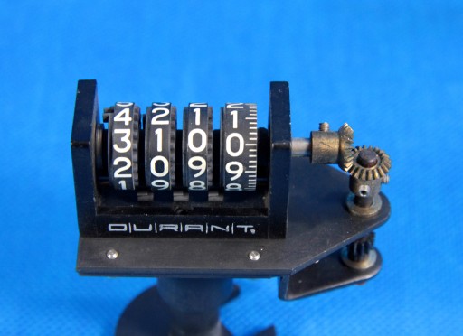 Ośka licznika ma średnicę 3 mm i zakończona jest przekładnia kątowa 90º na której znajduje się koło zębate o średnicy 7 mm i module 1.