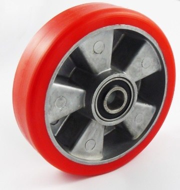 Koła aluminiowo-poliuretanowe to koła składające się z aluminiowego korpusu z trwale połączonym bieżnikiem poliuretanowym. Bieżnik koła wykonany jest z poliuretanu zapewnia wysoką odporność na zużycie, nie brudzi posadzki Poliuretan jest to materiał o właściwościach gumo-podobnych, bardzo dobre właściwości mechaniczne oraz chemiczne - 4 razy bardziej wytrzymały od zwykłej gumy!