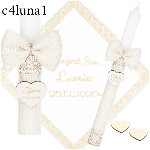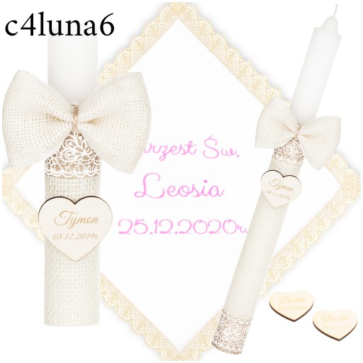 SZATKA I ŚWIECA DO CHRZTU PAMIĄTKA CHRZTU ŚWIĘTEGO GRAWER + HAFT CHRZEST