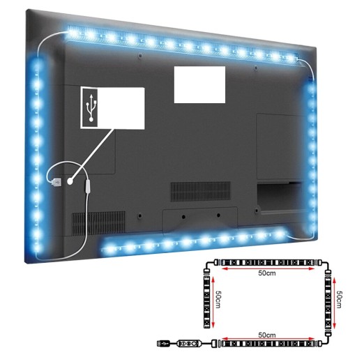 ПОДСВЕТКА ТЕЛЕВИЗОРА RGB СВЕТОДИОДНАЯ ЛЕНТА 4x50см ПУЛЬТ USB