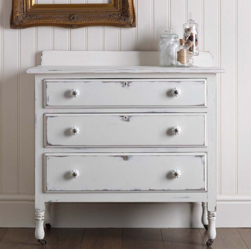 Głębokie i w pełni matowe wykończenie zapewnia klasyczny wygląd mebla. Kredowa farba umożliwia postarzenie mebla w zaledwie kilka chwil, aby uzyskać efekt shabby chic lub inny podobny.