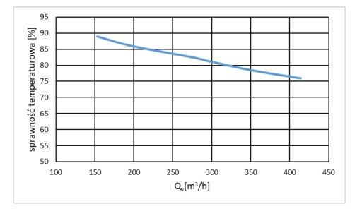- SPRAWNOŚĆ REKUPERATORA OD 65% do 92% (parametr zależy od różnicy temp.przepływu )