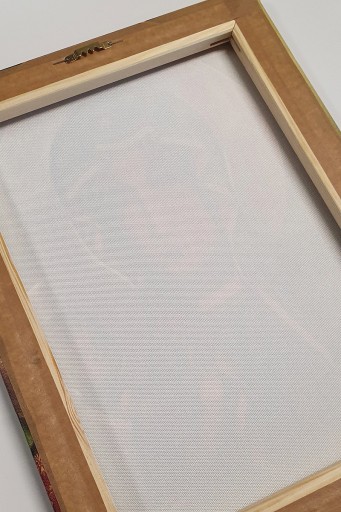 - tył obrazu wykończony specjalną krepowaną taśmą