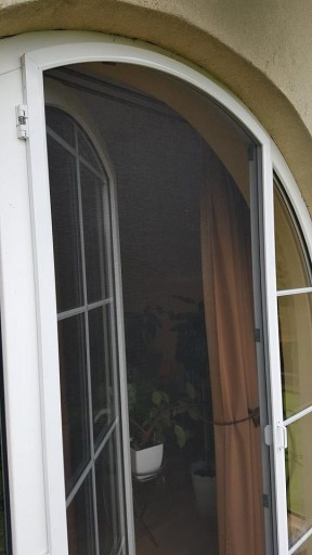 Na zdjęciach prezentujemy różne wyroby naszej firmy - moskitiery łukowe, otwierane . Przedmiotem aukcji jest moskitiera kołnierzowa, prostkątna , ramkowa na okno