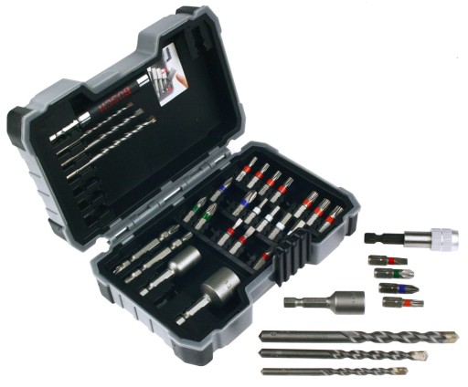 Zestaw 35 różnych akcesoriów z serii PRO-MIX w trwałej i bardzo poręcznej kasecie z tworzywa sztucznego składa się z: