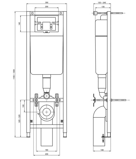 Głębokość stelaża: 135-245 mm wysokość stelaża: 1100-1300 mm
