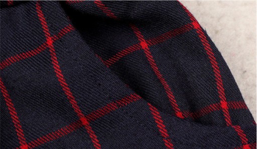 Spodnie uszyte są z miękkiej materiału w kratę z kieszeniami.