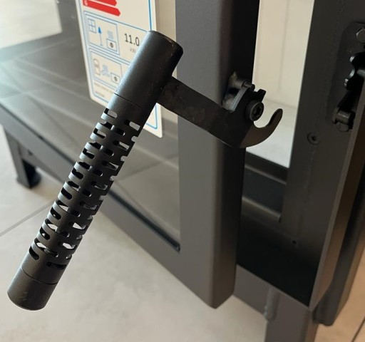 Regulacja dopływu powietrza z zewnątrz odbywa się za pomocą wbudowanej przepustnicy znajdującej się poniżej drzwiczek. Cały mechanizm działa wewnątrz kominka, bardzo cicho i bezawaryjnie.