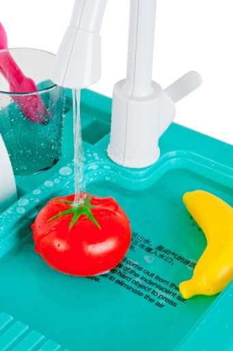 Kuchnia posiada efekty dźwiękowe i świetlne przy palnikach oraz wodę lecąca z kranu.