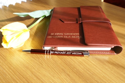 Na tej aukcji oferuje elegancki notes A5 z Twoim grawerem i długopisem z Twoim grawerem. Na długopisie grawer dwustronny.