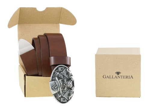 Brązowy gładki pasek to połączenie stylu elegancji i swobody w którym odnajdzie się zarówno płeć męska jak żeńska. Pasek jest wyposażony w klamrę pełną z motywem czaszki joker otoczonej kartami oraz metalową końcówkę co dodaje mu oryginalności i niepowtarzalności wzoru. Idealny dla fanów dwóch kółek i nie tylko.