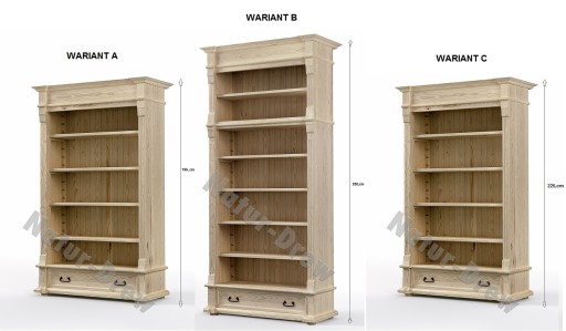 - Drewniany Regał na książki,postarzany z piękną zdobioną koroną u góry,regał posiada trzy regulowane półki,które ułatwiają dopasowanie ,pod przedmiot znajdujący sie w meblu,dodatkowo u dołu posiada drewniany Front , dodatkowym atutem regału są ręcznie kute zawiasy i uchwyty które nadają charakteru i duszy meblom z tej serii.