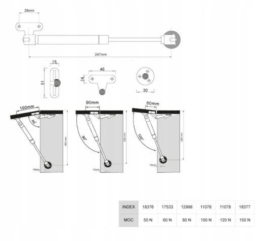 Zastosowanie: Do frontów meblowych unoszonych do góry