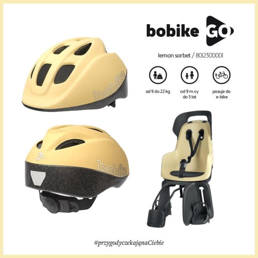 Kask typu Bobike jest w pełni bezpieczny, lekki, pasuje do każdego fotelika rowerowego - dedykowany kolorystycznie do fotelików GO. Posiada regulowany obwód głowy.