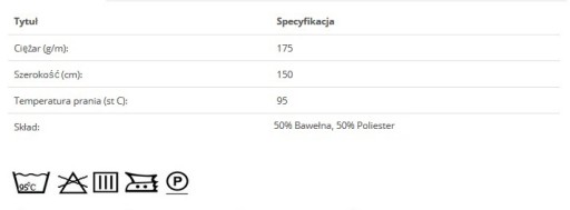 - Materiał: elanobawełna (poniżej specyfikacja)