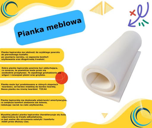 Sprzedajemy piankę w arkuszach od 1cm do 10 cm wysokości, cm szerokości i 200 cm długości. Pianka T18 to czysty poliuretan. Piankę tapicerską należy przechowywać w suchym miejscu, w temperaturze od 5 do 25 stopni. Po rozpakowaniu odczekać 12h aż pianka odzyska swoje właściwości.
